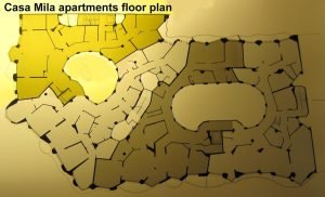 In 2013 I was lucky enough to visit Casa Battló here in Barcelona. Our apartment was a block away from it and the dragon-like roof beckoned daily. How could we resist? We spent half a day inside that marvel. The other building that has had my attention for many years is, of course, Casa Milà, also known as La Pedrera (the Quarry), which stands proudly a few blocks north up the Passeig de Gràcia. If you’ve ever been in my bedroom, you would have seen, above my bed, a mural painted with the help of my great friend, Esther: it is a replica, in a way, of the massive iron entrance gate of La Pedrera. Neither in 2011 nor 2013 was I able to visit it, so it was definitely on the top of my list this time around.