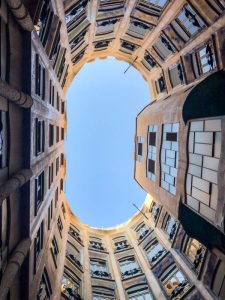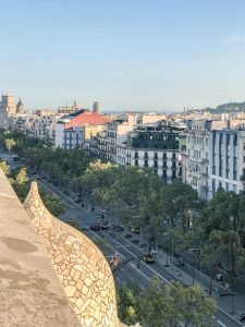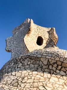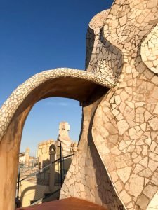 As you look at this building, it is impossible to ignore the sheer size of it (something that upset the city officials and neighbours when it was first built). The other thing you can’t ignore is its whimsy: concrete and wrought iron have never looked so lovely. What was even lovelier was the total lack of people lined up to see it (and the line-up was the reason we didn’t go in back in 2013). At my appointed time, together with a handful of other visitors, I was allowed into the belly of the beast. And what a wonderful beast it is. Not a straight line to be seen anywhere. As the helpful guide (on my phone) told me, this building was built by Pere Milà and his wife, Roser Segimon, and it was to be Gaudí’s last commercial building; after La Pedrera he concentrated only on La Sagrada Familia until his untimely death.