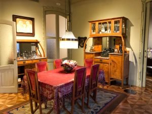 There is one apartment set aside for public viewing and it is decorated in the style of the 1910s. While wondering through it you can see how fluid the movement of people and light would have been. The rooms are always adjacent to the meandering corridor which abuts one of the two large internal courtyards and their large windows. I’ve included photos of the apartment in the Gallery though they really don’t do the space justice. It’s so hard to capture the flow and lightness of it. Each of the four apartments has windows on the main façade on Passeig de Gràcia, and then they snake around to the back of the building in very intriguing ways. I do wonder what it would be like to live there … heavenly, most likely. I’ve been trying to find out who else owns/rents space in this building now but I’m not having much luck. I do hope that whoever they are, they appreciate the space they work/exist in and if they don’t, I’ll happily replace them!