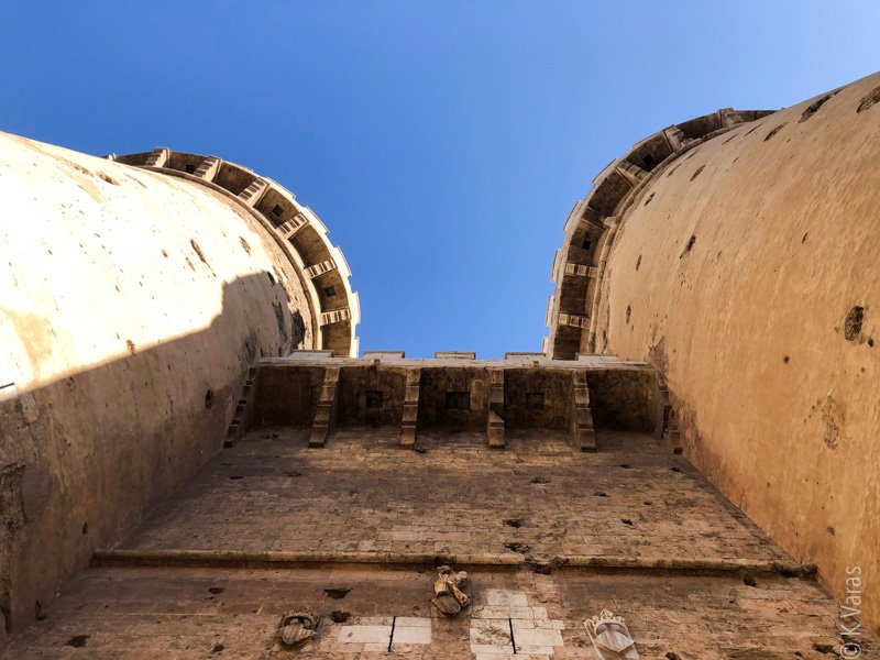 On my way home, I finally discovered the second set of guardian towers from the old wall that surrounded the original city of València, Torres de Quart. There used to be 12 such gates, all built in late XIV century, but now only two remain, after being demolished in 1865 on the orders of a poor excuse for a provincial governor, one Cirilio Amorós. Why anyone would destroy these ancient walls is beyond me; perhaps he was the same “bright” guy who had the Palacio Real demolished as well? Since the two events happened about 50 years apart, I will say no, but still, the XIX century fascination with tearing down significant monuments is beyond annoying. Just as an aside, the more famous gate, Puerta de Serrano (or Porta dels Serrans) is just down the street from where I’m staying right now.