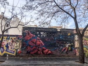 A few days later all three of us decided to go to El Molinon for lunch to try their specialty, fabada asturiana (bean stew), on Sagrario’s recommendation but since we had to wait for Ewa to get out of her classes, we walked around a part of Ciutat Vella I wasn’t very familiar with. This happened to be close to the Escola d’Art i Superior de Disseny de València (EASD), a 165-year-old art and design school run by the government of València (Comunidad de València, not the city), so perhaps it shouldn’t have been a surprise to see so much street art around the campus. What I didn’t expect to find, however, was a rather large urban garden where people were already working hard making it ready for spring. Of course here spring starts so early I’m sure they will have produce and flowers in no time. I checked Google Maps and it couldn’t have been long ago that both this garden and the mural overlooking it came into existence. Things move fast around here 🌞.