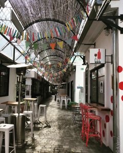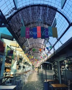 I spent some time learning my way around, always finding a new way to get to either the municipal market or the Mercadona I get most of my groceries from. Most days I stop at the little French bakery where I buy great croissants and other treats. Right around the corner from the house is a recently (as in the last two years or just after the last time the Google car came by) built gastronomic and social centre Els Magazinos, a collection of eating and drinking establishments that spans a couple of blocks and is always buzzing with activity, even with limited occupancy. Since there is usually a long line to get in, I had to wait until I was out at an earlier than usual hour (hair salon appointment) to sneak in and take a look around. It is a very interesting space, I must say, and I totally understand the appeal. There are many various restaurants, or, more accurately, stands, where you can get a variety of different foods, from Japanese to Spanish fusion. I will definitely have to come back and see what it’s like when people are present, now, thankfully, in reduced numbers.