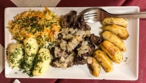The Polish restaurant, La Polonesa, was everything Lisa promised me it would be: close, cosy, and run by a lovely lady who treated us like queens. Having spoken to her in Polish may have helped a little but it was still awesome. We tried a number of typical dishes, from some amazing country bread, through sałatka z buraczków (beet salad), gołąbki (cabbage rolls), and kluski śląskie (Silesian dumplings), to wątróbka z jabłkami (liver with apples). We did not have dessert because after all that food we would have exploded trying to stuff more in. I guess I will have to go back and try the cheesecake another time. As a matter of fact, there are a number of dishes on the menu I’d like to go back and try. I guess I will be adding this lovely place to my ever-growing list of places to return to.