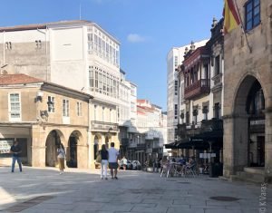 We finally met up with Petunia and retreated to one of the bars lining the edges of the main old city plaza (Plaza De García Hermanos) to celebrate a very well spent day in good company. The drive back to A Coruña only took about half an hour. I always enjoy spending such extended periods of time with my new Spanish friends as this is one of the few opportunities I have to practice my language skills. Speaking of languages, I’m sure you’ve noticed I have been using names for things that don’t look very Spanish. Most of the place names in Galicia are, in fact, in Galician, starting with the name of the city itself: A Coruña. I always wondered what that “A” meant; in my mind I tend to translate it as “to” since the preposition “to” in Spanish is “a”. That is, of course, totally wrong, mainly since in Spanish the name is actually La Coruña. There are also many places with “O” in front which means “el” in Spanish (the male article the). What I’ve forgotten to mention is that the second official language here is Galician (gallego) and it is very similar to Portuguese. This is not surprising since Portugal is not far away and language, as we all know, does not respect boundaries. Just as Catalan (and by extension Valenciá) is a mix of Spanish and French, Galician is a mix of Spanish and Portuguese. What is interesting is that to me Catalan sounds Portuguese to me too, but I think that’s because it is so much more nasal than Spanish. When I hear Galicians speaking Spanish, however, I think they’re Italians speaking Spanish, i.e. with an Italian accent. You’d be amazed how many time I heard some local speak Spanish but since I thought they were Italian I had an urge to say grazie and prego, just to be friendly, you know? One day I will keep all straight in my head … maybe.