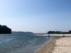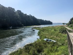 Inspired by the river views, Roberto drove us to the actual village of Bergondo next (we were in one part of it already) where we could walk down to the beach on the banks of the head of the Bergondo ria (that’s the narrow point inland to you non-geography folks). You could see how shallow this end in comparison to normal rivers, leaving a perfect spot for easy bathing. There were quite a few families enjoying this beautiful warm day, I’m sure all of them happy they were not suffering the heat dome currently over Valencia.