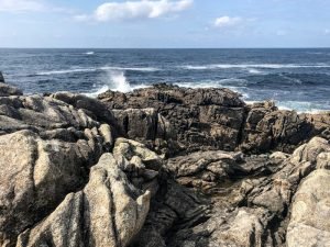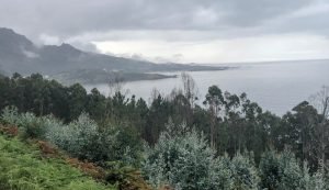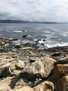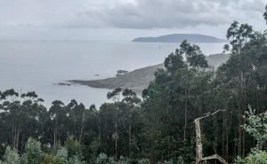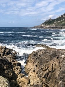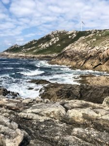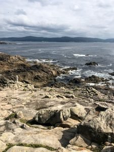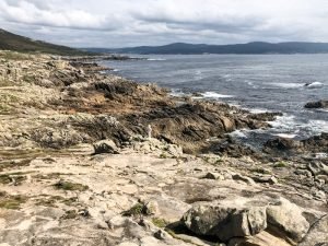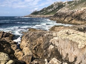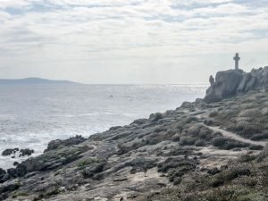 We had been very lucky with the weather the last two days but luck can only take you so far and this is Galicia, after all: unpredictable weather is kinda a thing here and that is definitely part of its beauty. The clouds didn’t deter us from having a blast, however, so after a quick breakfast, we settled our very economical bill at the hotel and headed north. The idea was to cut across through the inland roads back towards Carnota where Fely said a restaurant we should try for lunch was located before indulging my desire to visit the End of the World, or Finisterra, the presumed westmost continental point in Europe. At least the Romans thought so. As with many geographical landmarks, measurement was, until recently, very tricky and there are at least two other points further west in Europe, one in Portugal (Cabo da Roca) and the other in Spain (Cabo Touriñán), a little bit north of Finisterra. Nevertheless, most people have never heard of the other two and tourists flock to Finisterra and its various holy rocks. I don’t know how the Romans figured out this was the place to see the last sun of the day, but in true christian fashion, its significance was borrowed (appropriated?) by the faithful and it became the final destination of many pilgrims walking the Camino who, upon completing their trek to Santiago de Compostela, continue the extra 90 km to watch the sun set. I was now hoping to make my own pilgrimage too.