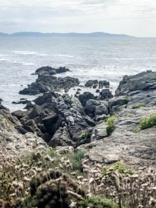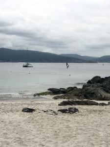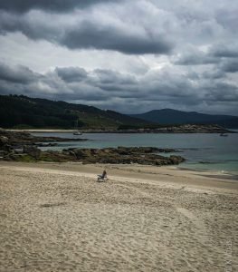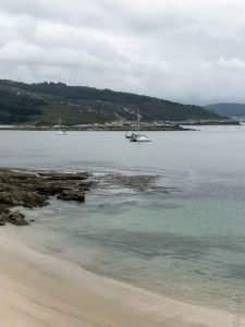 Eventually we did emerge from the fog as we returned to sea level but, to our great disappointment, Restaurante Casa da Crega in Caldebarcos was closed and we had to find another place to eat. The time of day was also not working for us as we realized we wouldn’t have time to go to Finisterra and make it back to A Coruña at a reasonable hour. So, instead, I took a longing glimpse at the End of the World from across the water and we turned back inland to go north towards a place called Corme, situated on the north side of the Ría de Corme e Laxe. Technically, we had crossed over into las Rías Medias but I won’t be splitting hairs on the exact geography here. The point is, there was sun and good food here and since every great meal (more rape stew!) is followed by a restful siesta, we took ours at the little beach just by the restaurant. Life is so difficult here (major eye roll).