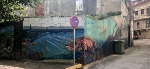 The adventure wasn’t quite over, however. We retraced our steps a bit and went back to the very cute little town of O Porto do Corme where we explored a little. As with all the places I have found in Spain, even the smallest pueblo has something to offer and this one surprised us with some very narrow streets, some murals, interesting architecture, and very fishy street art. Never a dull moment … but now it was time to go home.