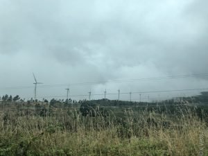 As we traversed the backcountry on the way to Caldebarcos (the place for lunch), I was constantly fascinated by all the wind turbines we seemed to get very close to. The fact that we were in a very hilly area probably contributed to this feeling but the way the huge blades would all of a sudden appear out of the ever-present fog made the drive even more spooky.
