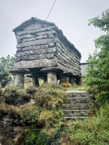 The other recurring theme were the hórreos, the stone structures that front most of the houses in rural Galicia. They have a somber look about them, even a morbid one, especially if you remember the typical mausoleums found in old European-style cemeteries (not the sprawling lawn ones in North America where land is plentiful, clearly). Many are adorned with stone crosses and other carvings which, at first, suggests a religious nature, but their use was an agricultural one, usually as granaries or as fishing gear and net storage. They are quite ubiquitous in this region and I had been trying to get a good photo of them for a while but doing so from the bus has been proving a challenge. Fortunately, I was now travelling by car and stopping where you want is the great advantage of doing so. When we saw a particularly interesting one, Sagrario stopped and I quickly got a close-up of an hórreo that looked ancient enough. I read somewhere that none remain that are older than the XV century but historical records show that the hórreos have been around long before the Romans showed up. Given how much stone there is around here, I am not surprised at all: nothing else could withstand the winds and rains that batter these lands.